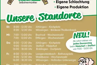 Wir sind ein moderner Familienbetrieb, der frische, regionale Fleisch- und Wurstwaren in Spitzenqualität aus eigener tiergerechter und nachhaltiger Herstellung anbietet. Die Vermarktung unserer Produkte findet über mobile Verkaufswägen auf umliegenden Dörfern und Wochenmärkten statt.